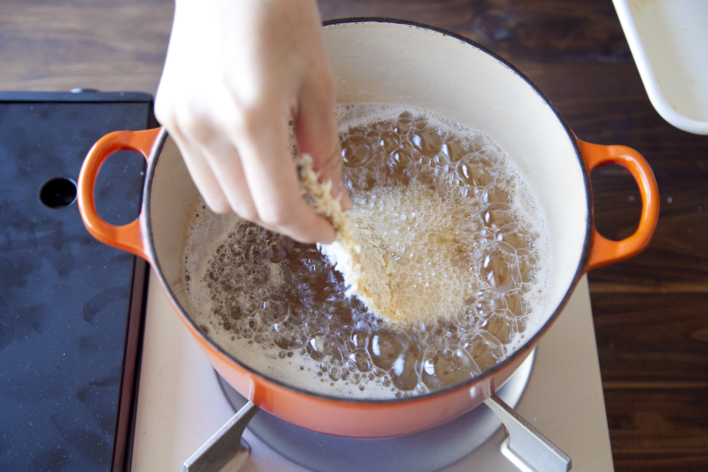 180度に熱した揚げ油で3〜4分ほど揚げる。