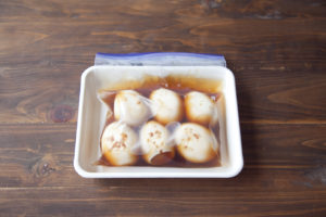 かつお節をいれることで、だし汁いらずで手軽に作れる味玉です。