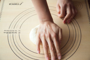 混ぜ合わせて粉っぽさがなくなったらひとまとめにして台に出す。