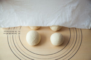 カードで4等分にして丸め、ぬれぶきんをかけて15分おいて休ませる。