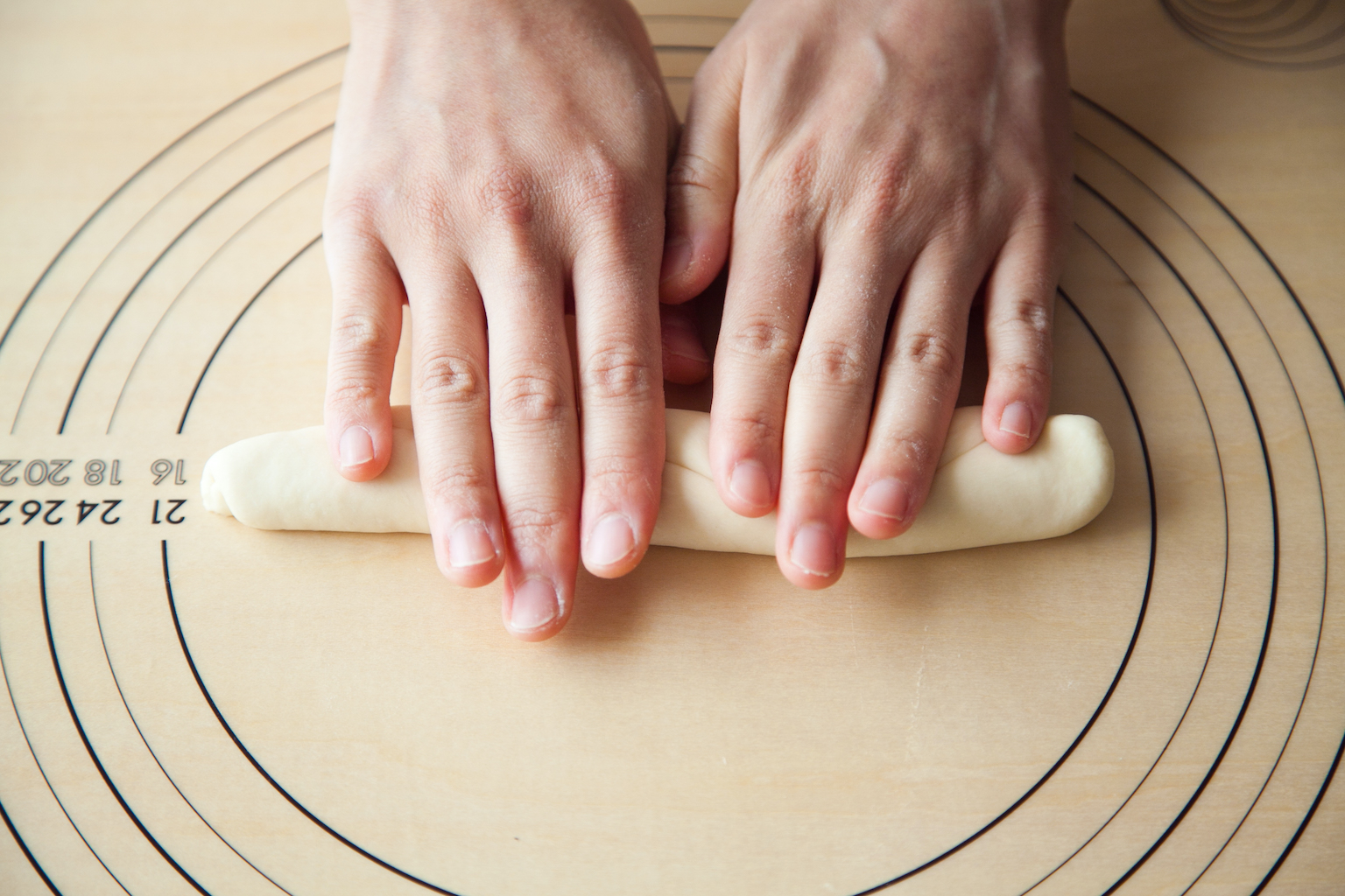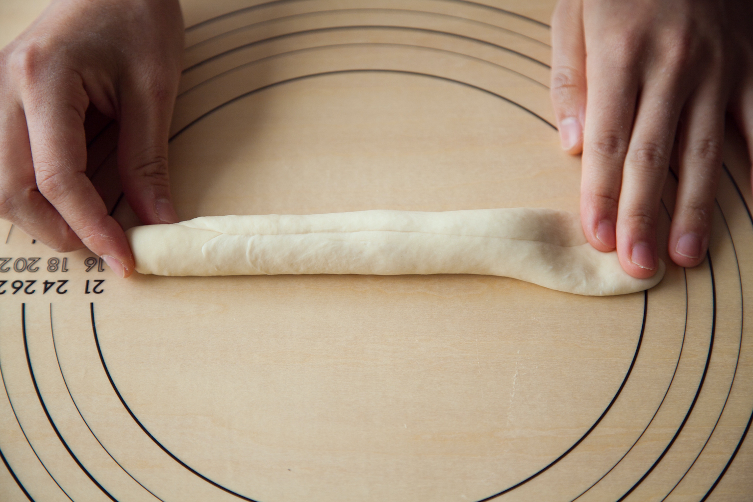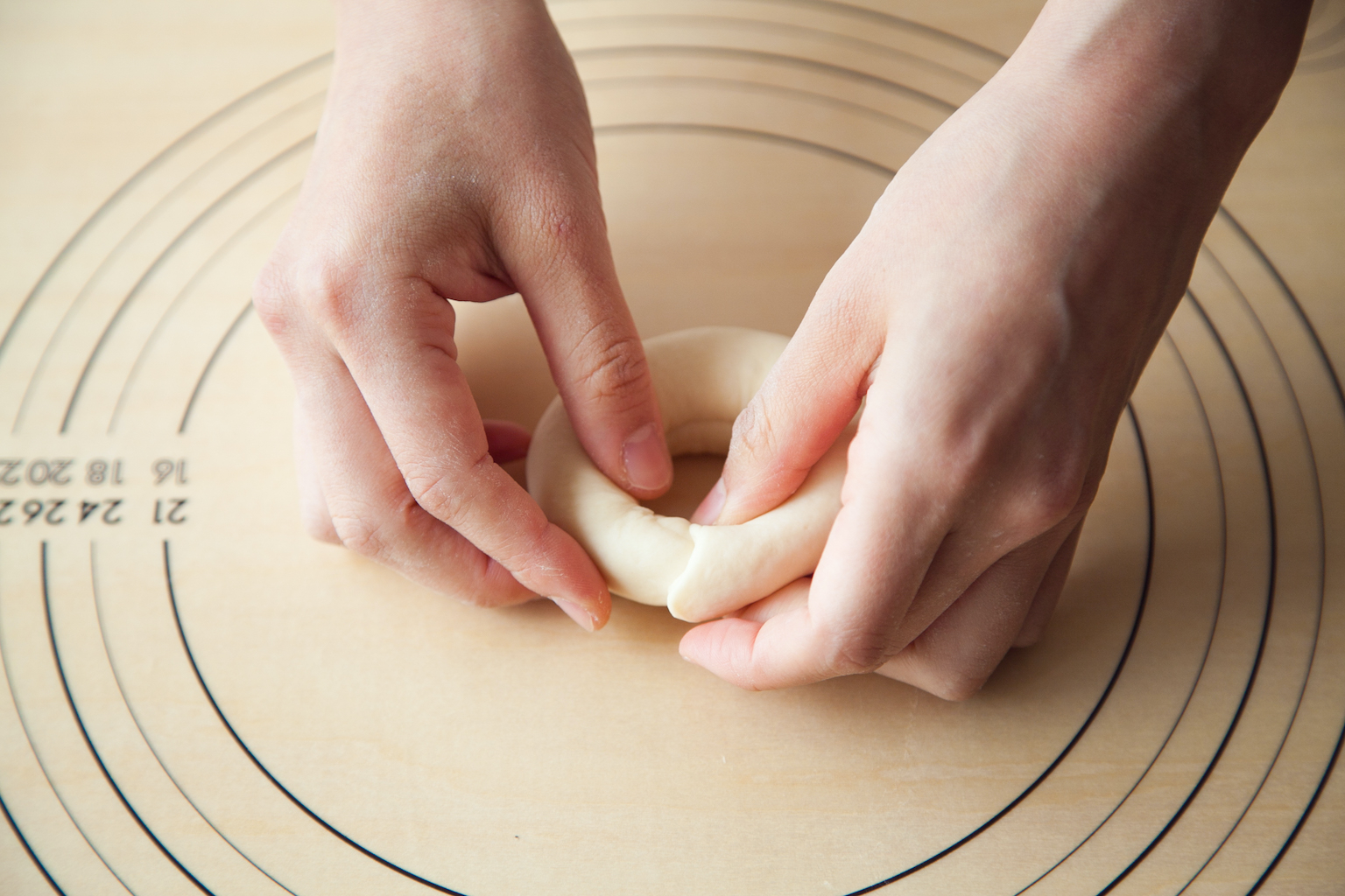 もう一方のはじを包むようにしてドーナツ状にしてしっかりとじる。