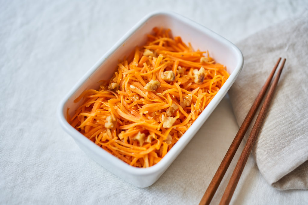 にんじん丸ごと1本、甘酒を使った作り置き「甘酒キャロットラペ」の作り方です。