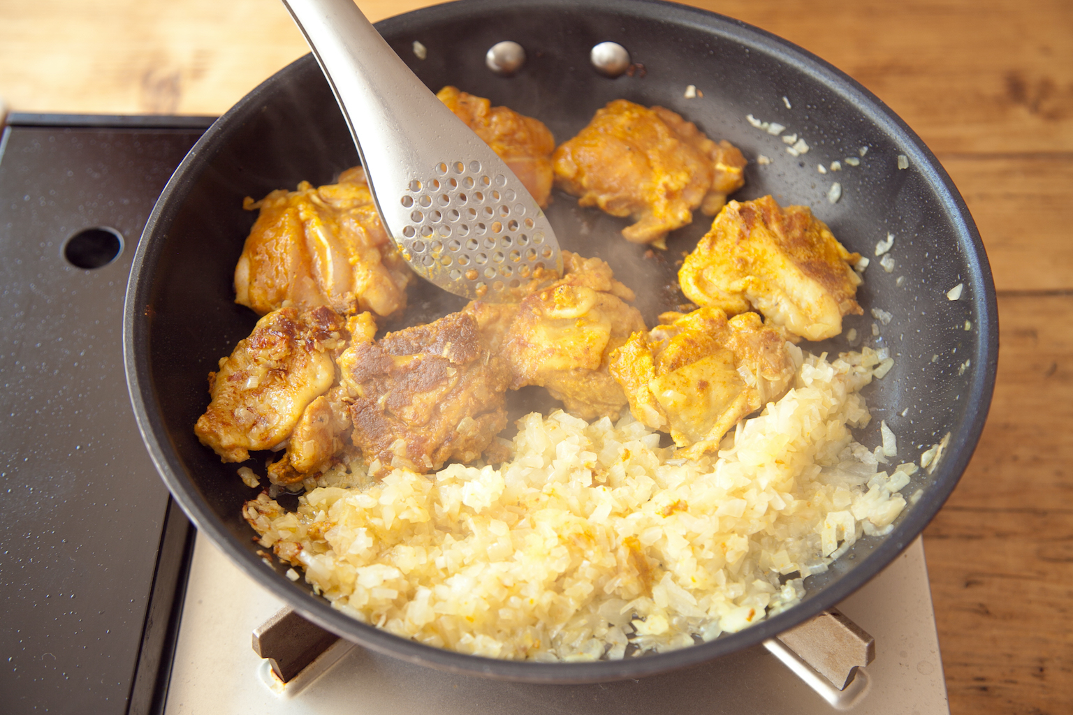 甘酒で漬け込んだ鶏肉が柔らかく仕上がる、チキンカレーの作り方です。