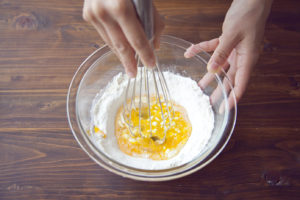 周りがかたまってきたら菜箸を入れて上下を返して裏面も軽く焼く。