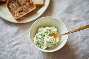 ボウルを下に敷いたざるにキッチンペーパーを敷き、ヨーグルトをいれて