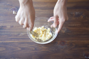 (※完熟のものでなければ電子レンジで1 分ほど加熱すると潰しやすいです。)