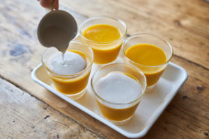 ざるで裏ごしをして、容器に入れて冷蔵庫で2〜3時間冷やして固める。