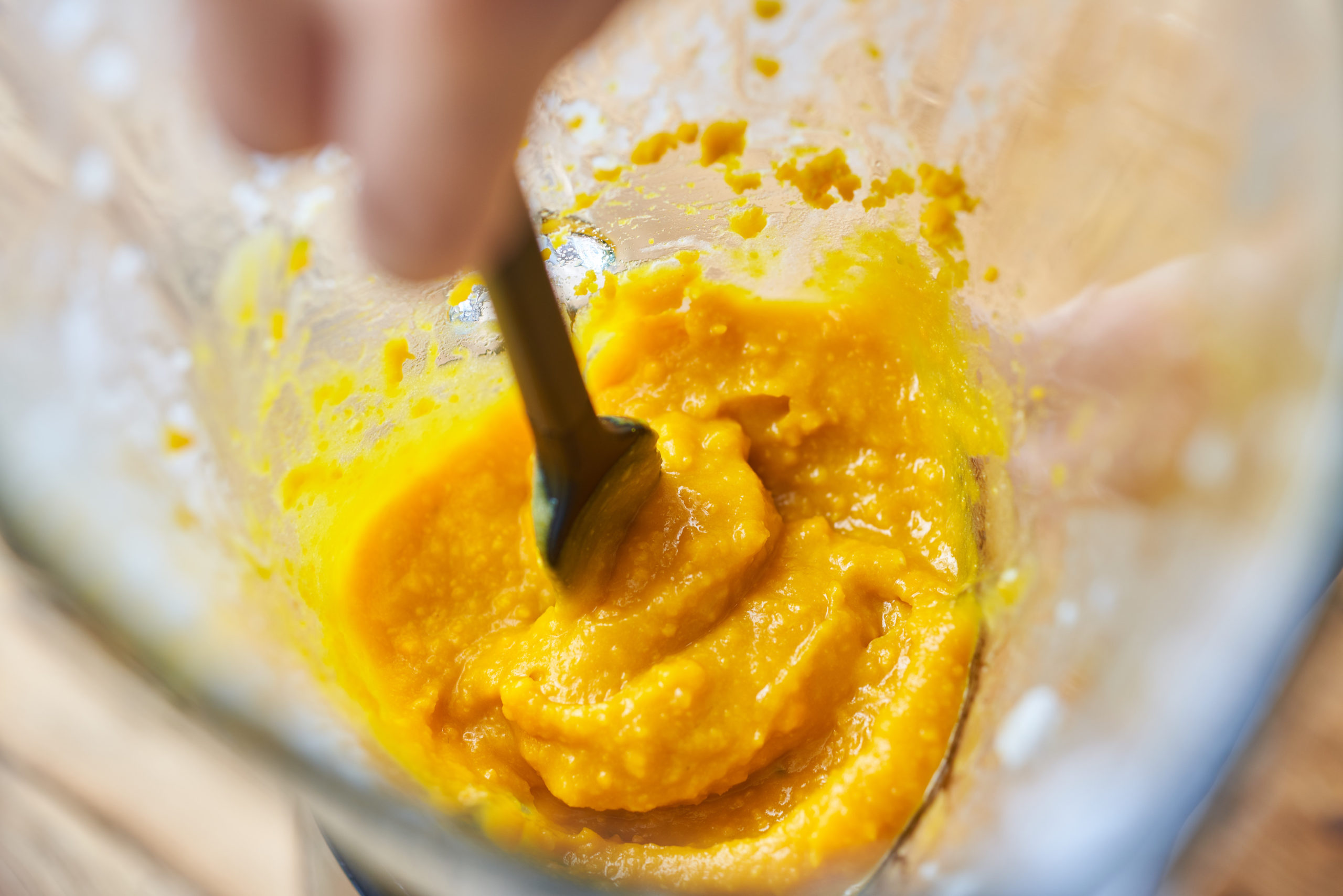 甘酒をミキサーにかけ、大さじ4をソース用に取り出す。