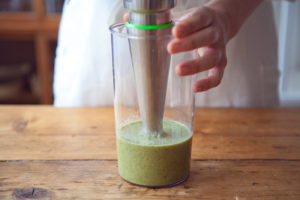【1】ミキサー(またはブレンダー)に青じその水気を拭き取ってからちぎり入れ、