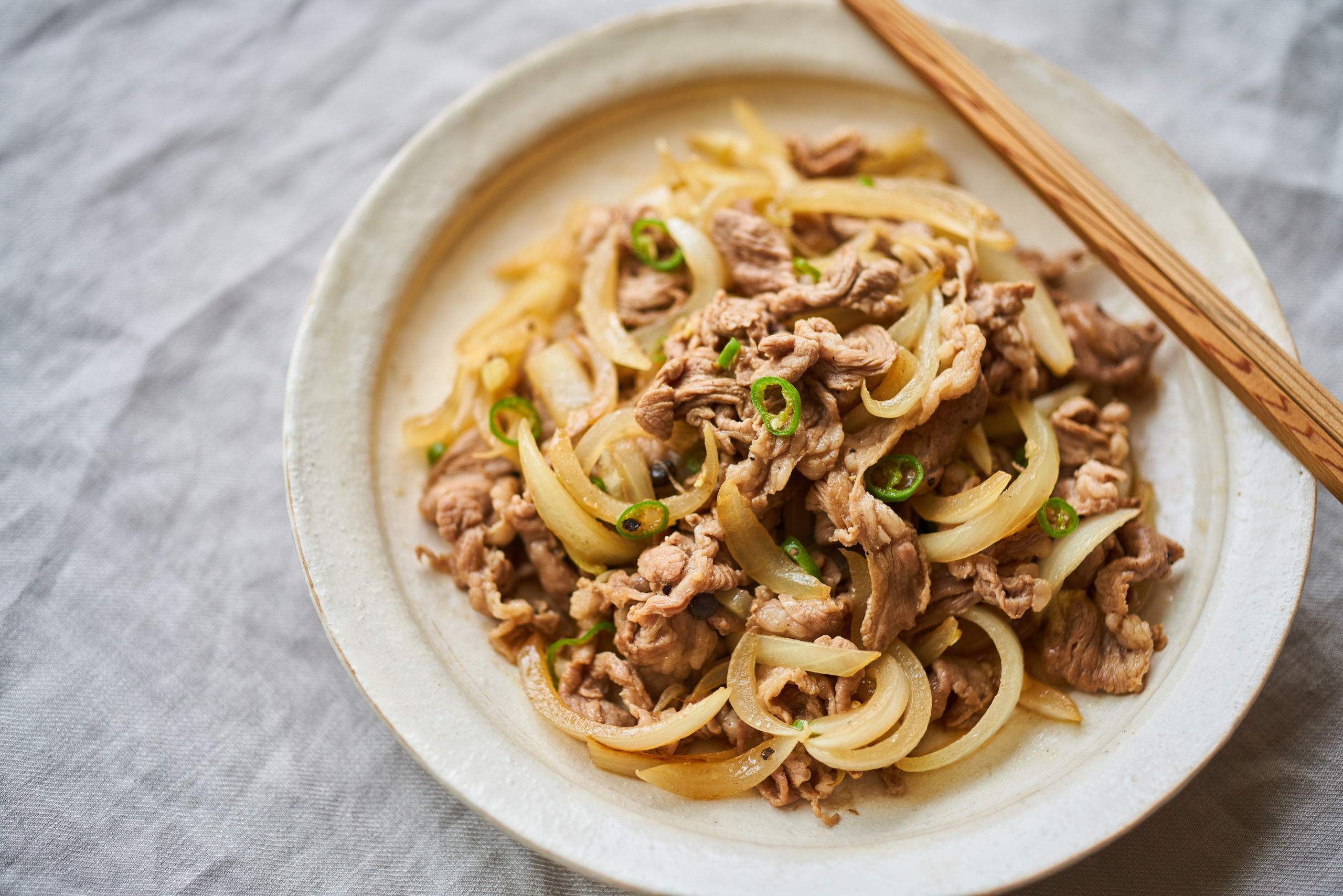 肉の色が変わったら塩、こしょう、しょうゆを加え合わせ、器に盛り付ける。