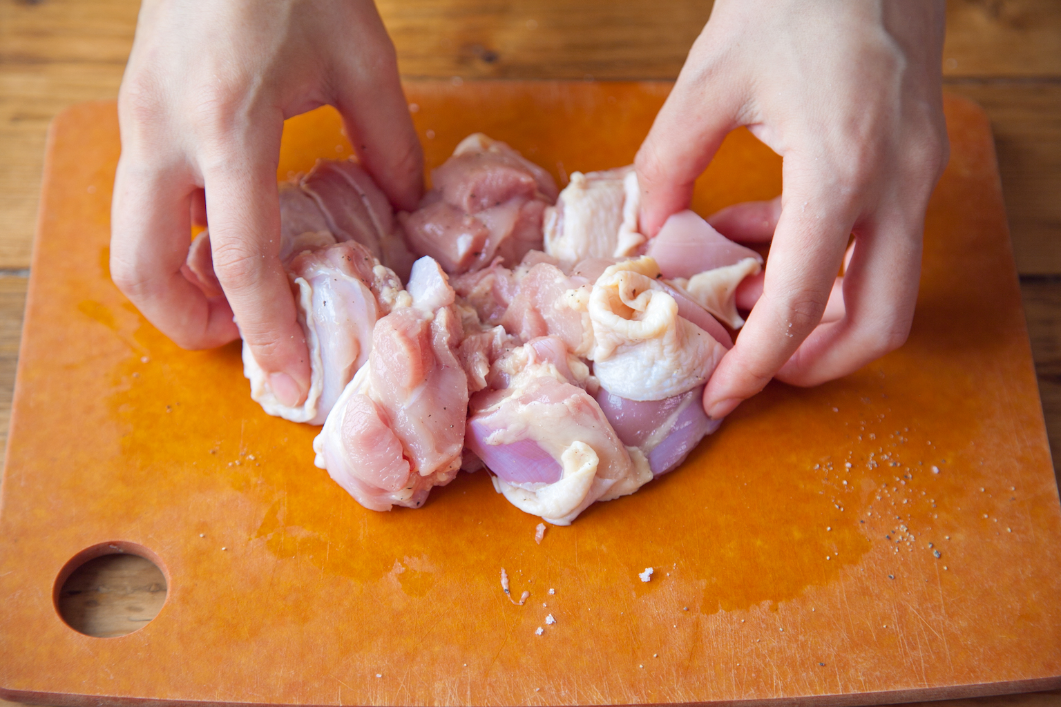 鶏肉は一口大に切り、塩こしょう(各少々/分量外)をもみ込む。