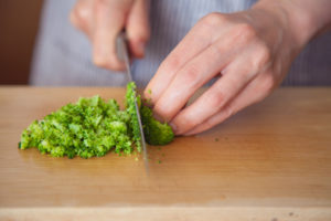 【4】残りは離乳食用にさらに2〜3分蒸し、穂先のみを刻む。