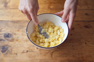 (※バナナが完熟のものでなければ電子レンジで 1 分ほど加熱すると潰しやすいです。)