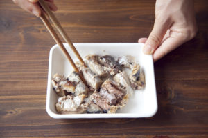 軽く焼き色がついたら取り出し、軽くほぐす。