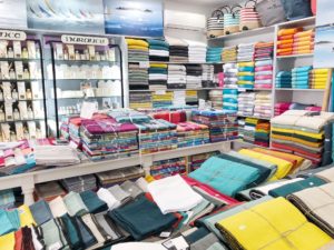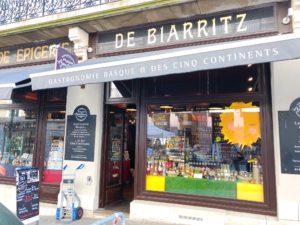少し内陸の道には老舗のパティスリーやバスクリネン専門店から、エスパドリーユ専門店も。