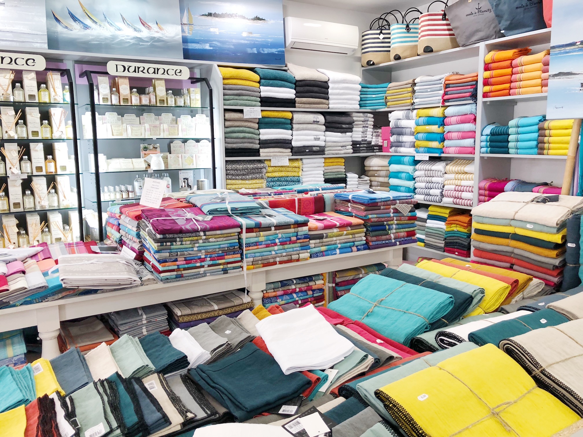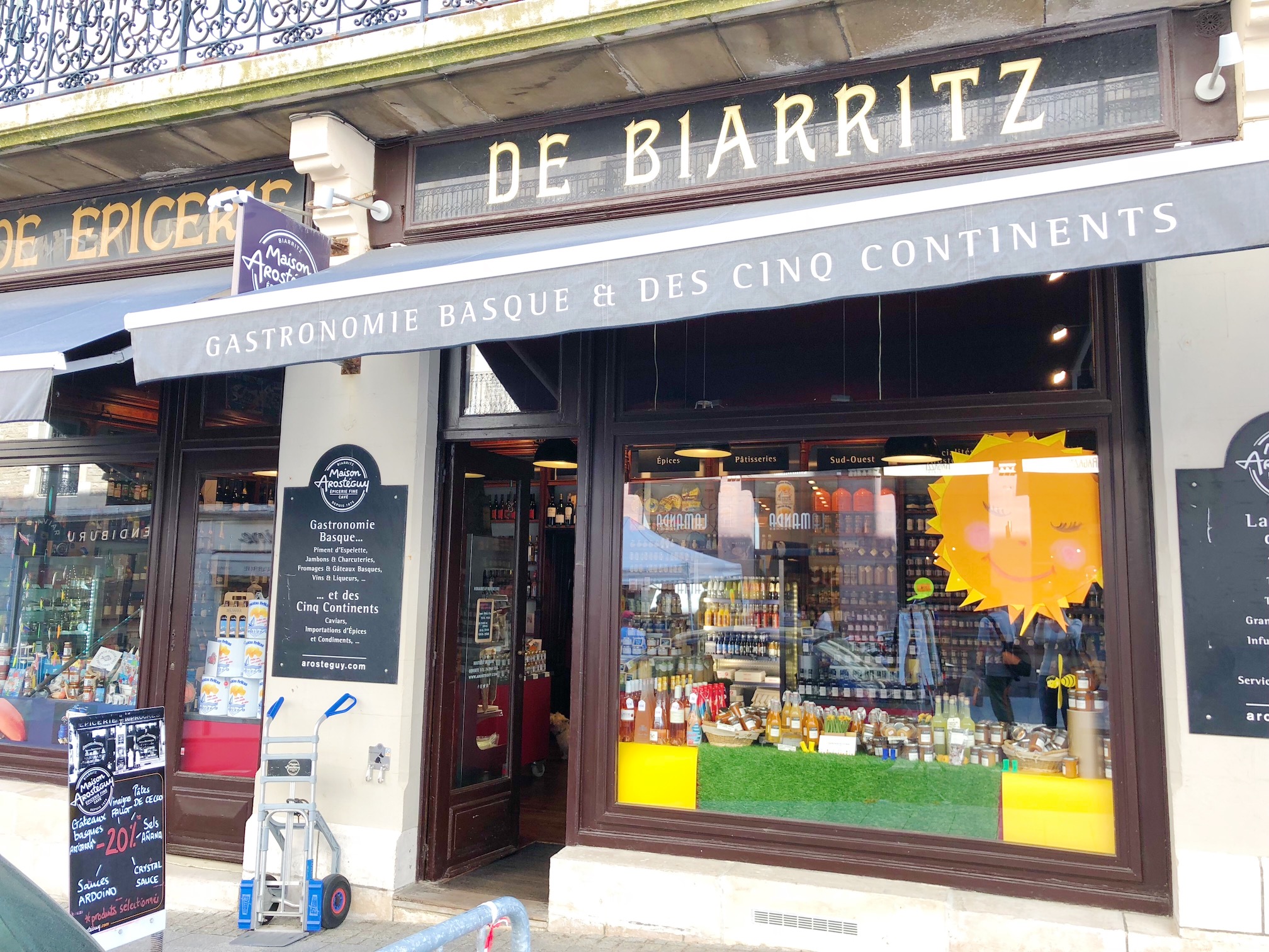 少し内陸の道には老舗のパティスリーやバスクリネン専門店から、エスパドリーユ専門店も。