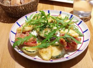 こちらはカルパッチョ。下に敷いてある四角いものがなんとお刺身です…!