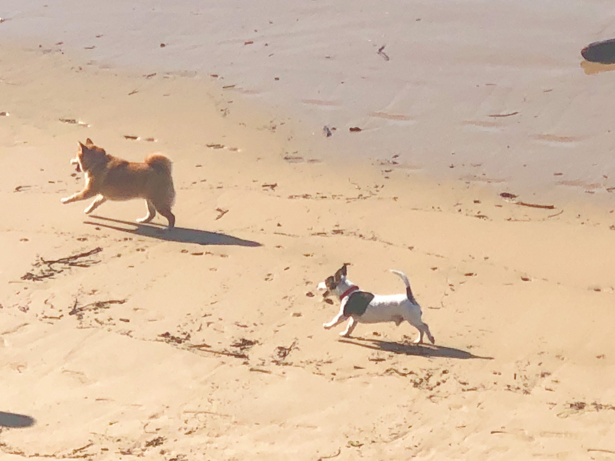 前に走っている子、柴犬でした〜!サン・セバスチャンで柴犬に会えるなんて!