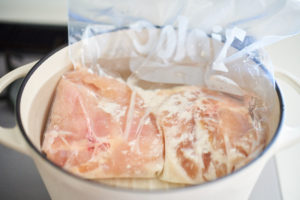 湯の中においておくだけで、驚くほどしっとり仕上がります。