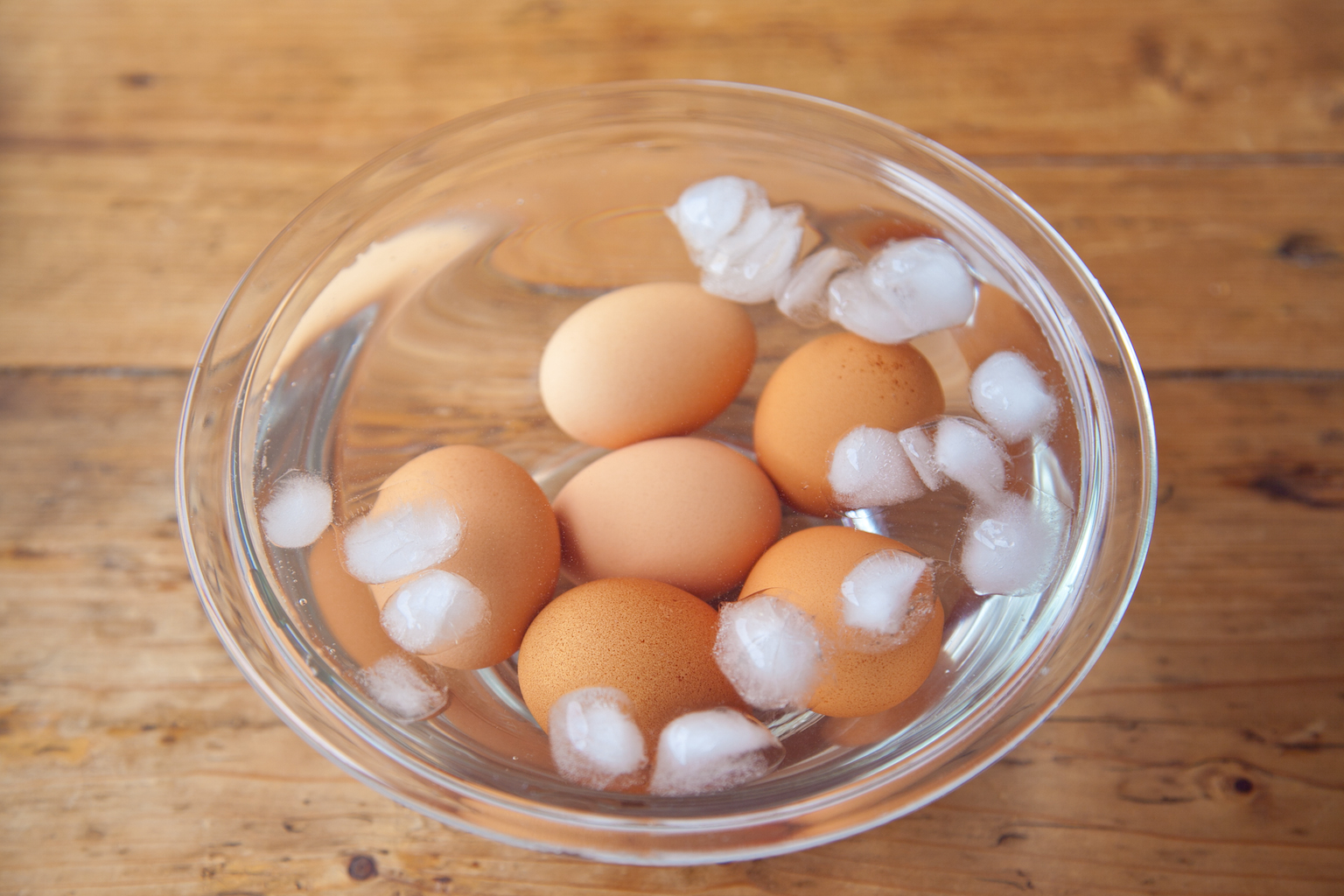 【2】氷水に卵を入れて、10分以上おいて冷ましてから、