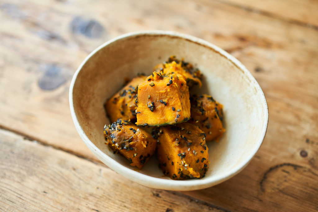 鉄分の吸収を良くするビタミンCが豊富なかぼちゃに、鉄分豊富なごまをたっぷり合わせました。