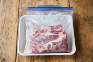 厚手の鍋に豚肉を塩麹ごと、かぶる程度の水(1〜1.