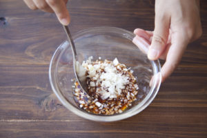〈ピリ辛ねぎだれ〉の材料は合わせておく。