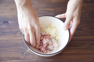 今回はマンドゥ(韓国のぎょうざ)の包み方をすることでタレと絡みやすく仕上げます。