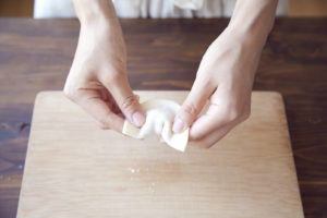 塩(分量外/ふたつまみ)、片栗粉(分量外/大さじ1) を絡ませて水洗いし、