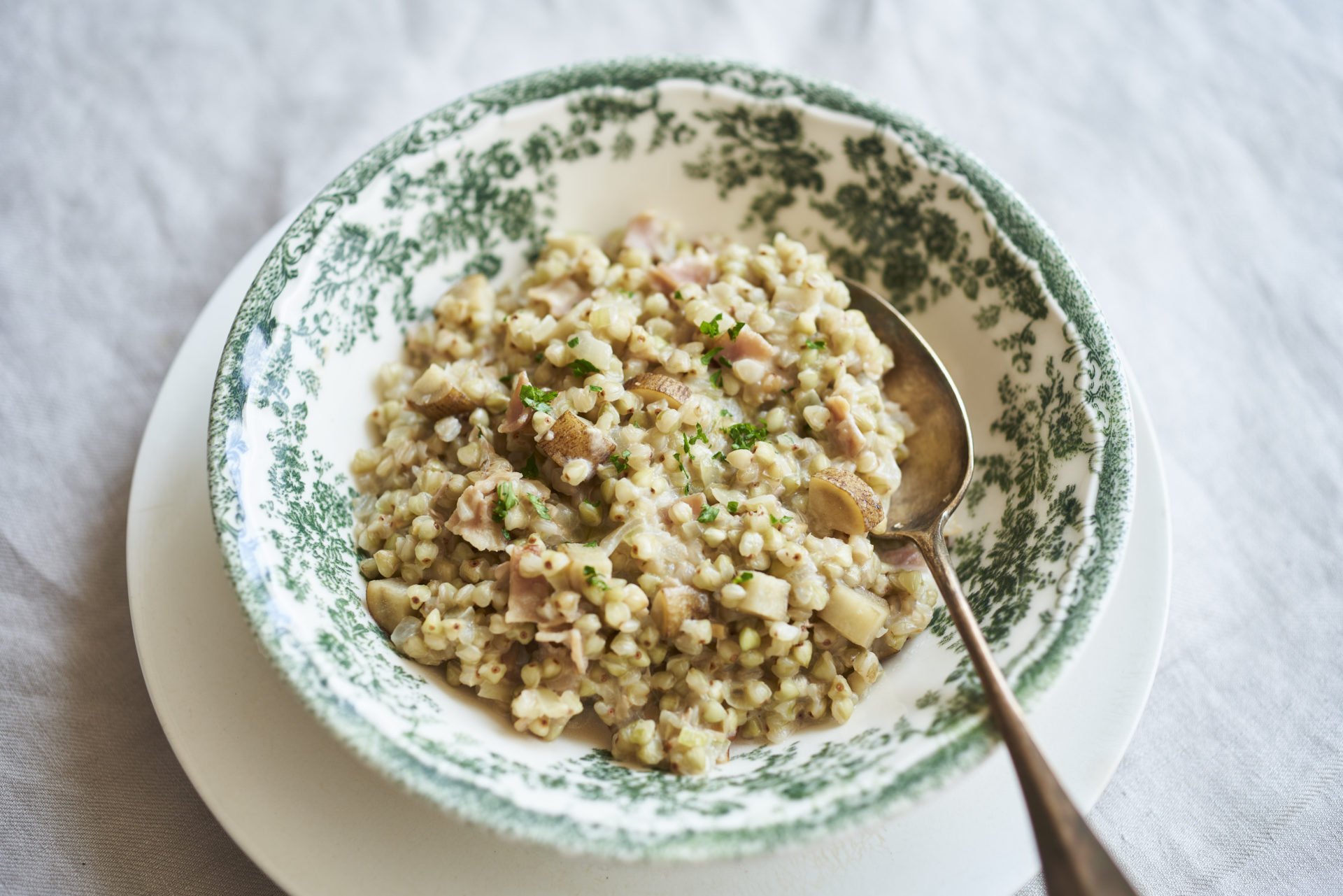 ぷちぷちとしたそばの実とごぼうがたっぷりでヘルシーなリゾットの作り方です。