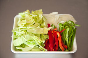ピーマン、玉ねぎは縦薄切り、キャベツは1.5cm幅に切る。