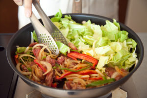 野菜がしんなりとして牛肉に火が通ったら、器に盛り付け、