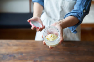 清潔な瓶に瓶にいれて、蓋をして勢いよく降る。