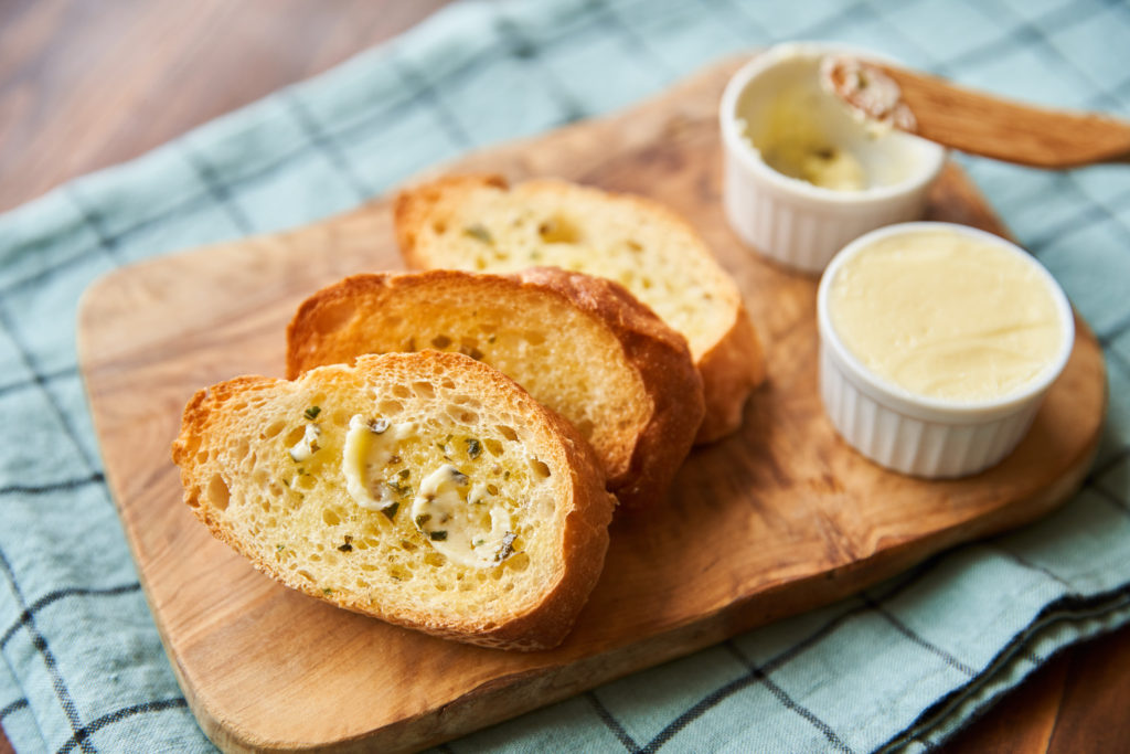 バゲットに塗ってトースターで焼けばガーリックトーストの出来上がり。