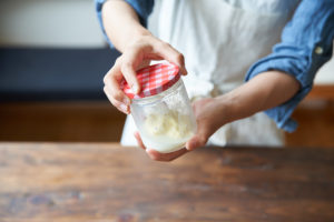 清潔な瓶に瓶にいれて、蓋をして勢いよく降る。