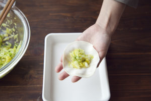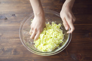 キャベツに塩をしっかりと揉み込んで10分ほどおいて、