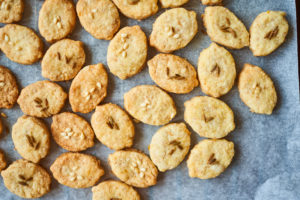 ごま油(分量外/適量)をまわしかけてカリッとするまで焼き上げ、皿に盛る。
