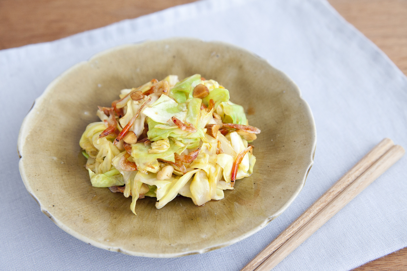 キャベツと桜えび、ナッツを使ってナムルを作ります。
