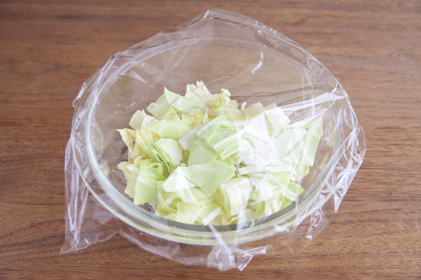 キャベツと桜えび、ナッツを使ってナムルを作ります。