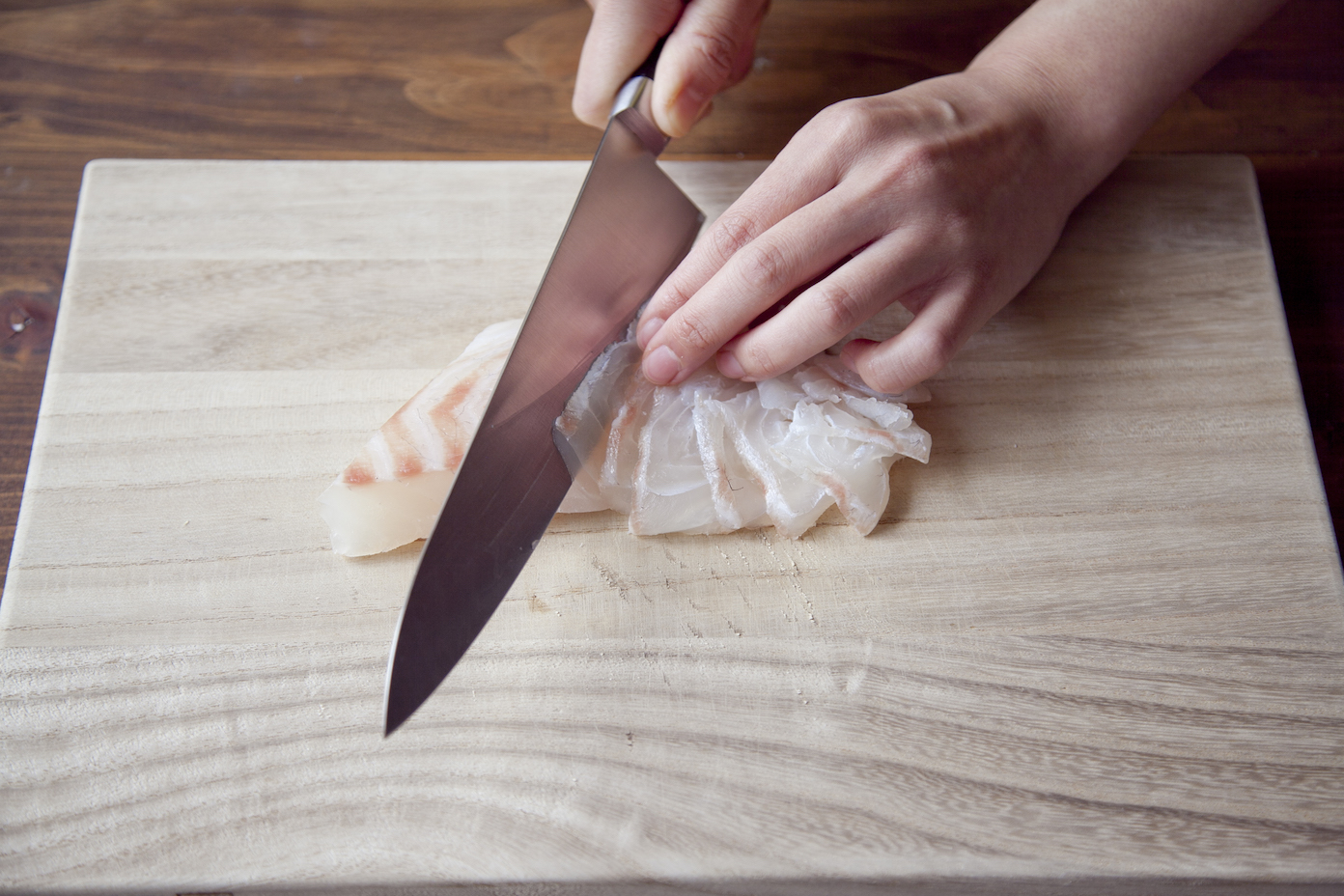 鯛はそぎ切りにする。