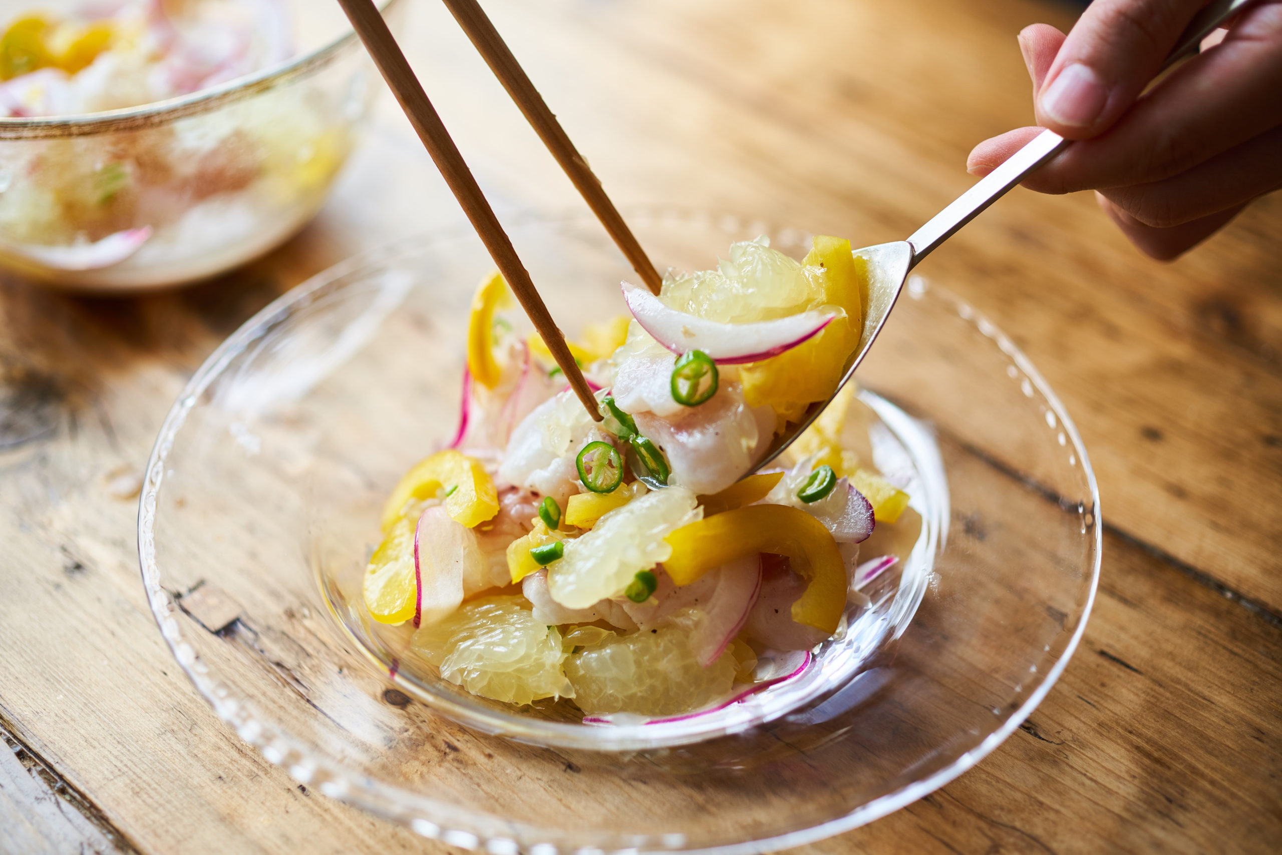ペルー料理、お刺身を使ったマリネ「セビーチェ」の作り方です。