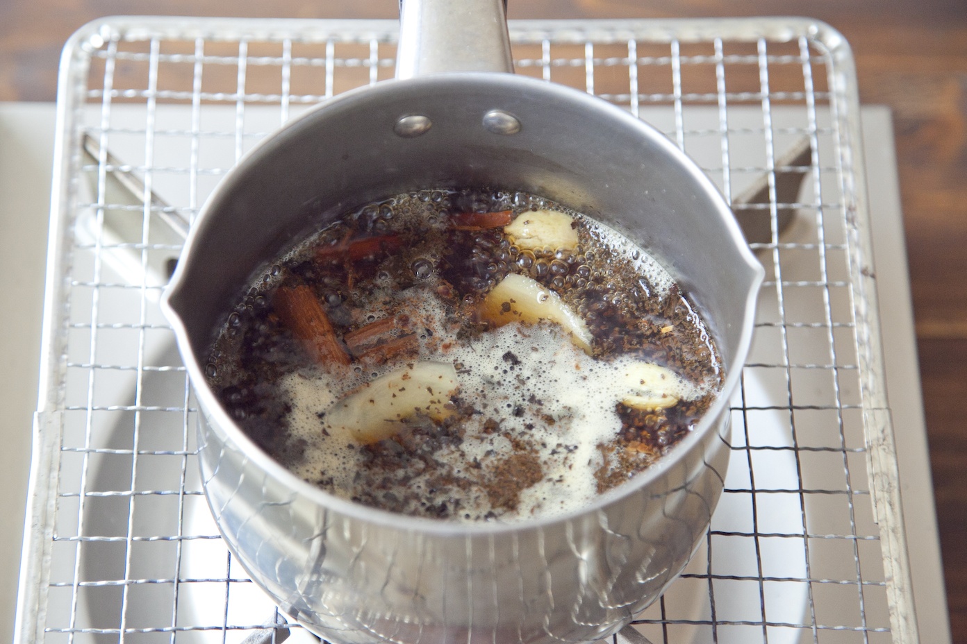 沸騰したら弱めの中火にし、2分煮出す。