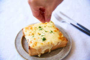 2種類のチーズをたっぷり使った、チーズトーストの作り方です。