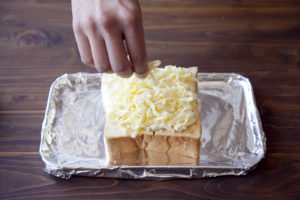 トースターの天板にホイルを敷いてのせてチーズが溶けるまで焼く。