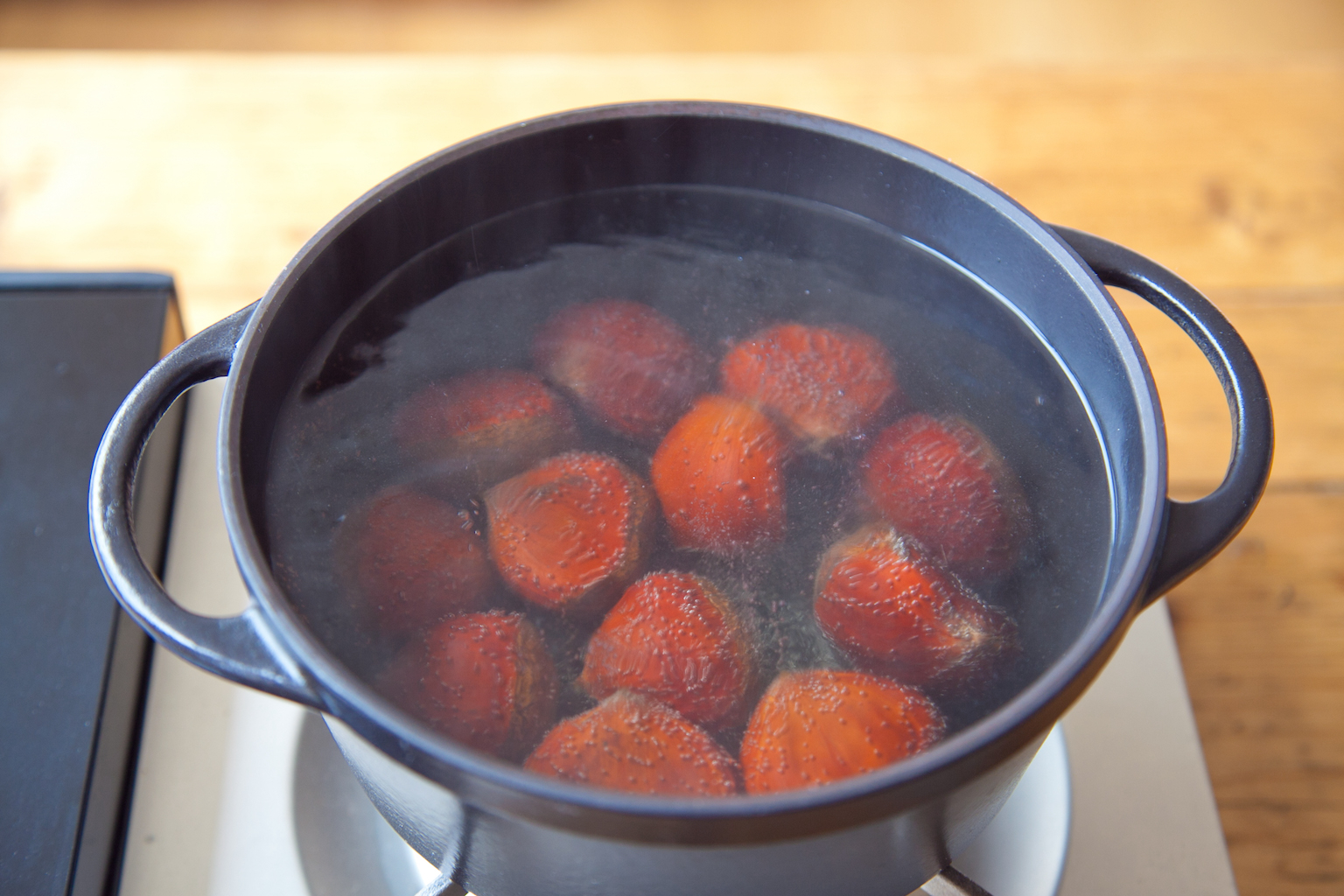 鍋に栗、たっぷりの水を入れて中火にかけ、