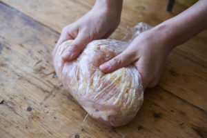 鶏肉を加熱の30分ほど前に室温に出しておく。