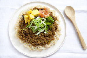 少し和風テイストなチキンキーマカレーです。