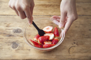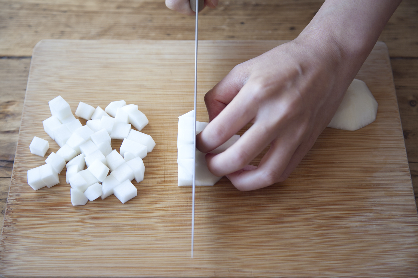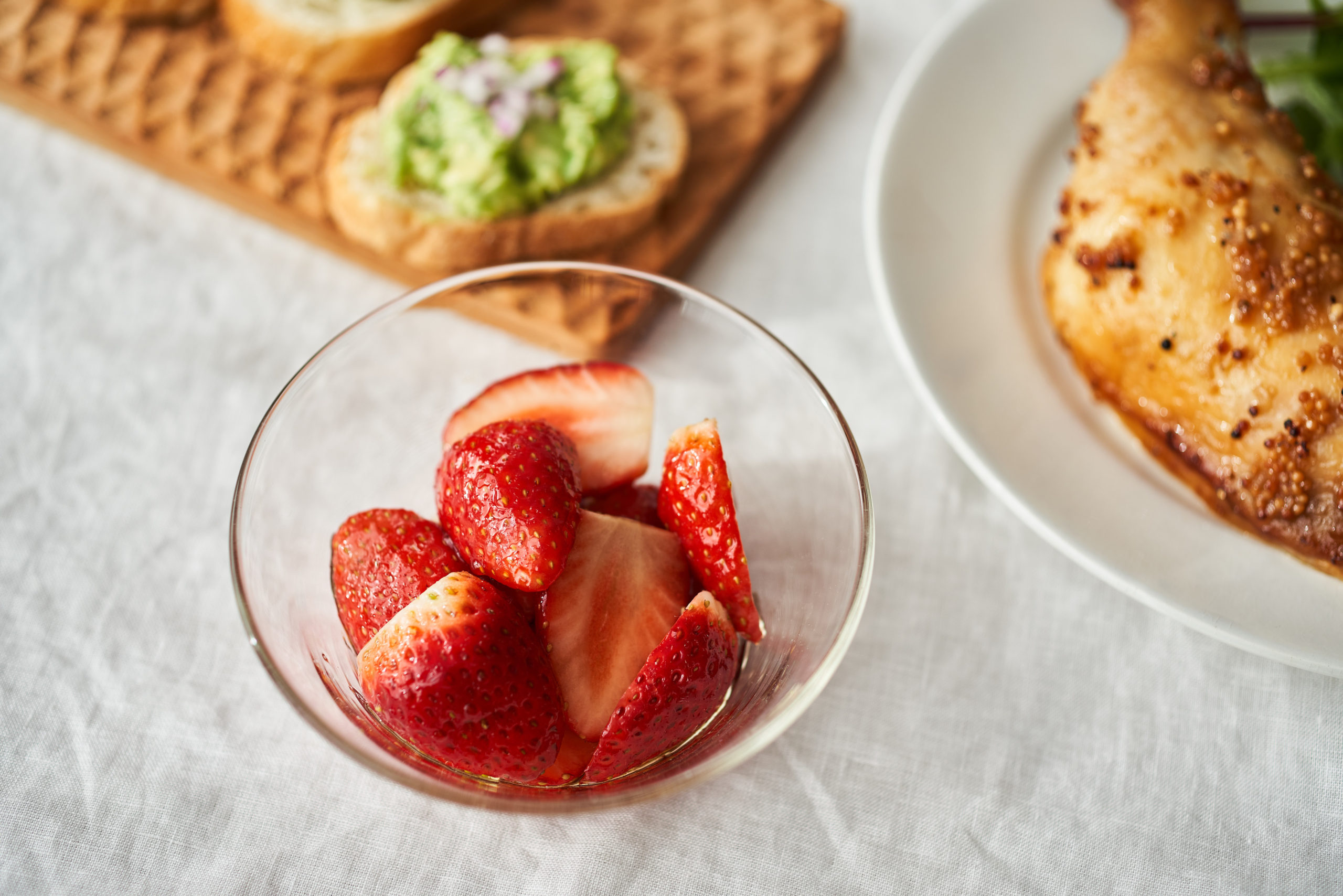 まずかぶのミルクスープを。野菜を煮ている間にいちごのマリネをつくり、
