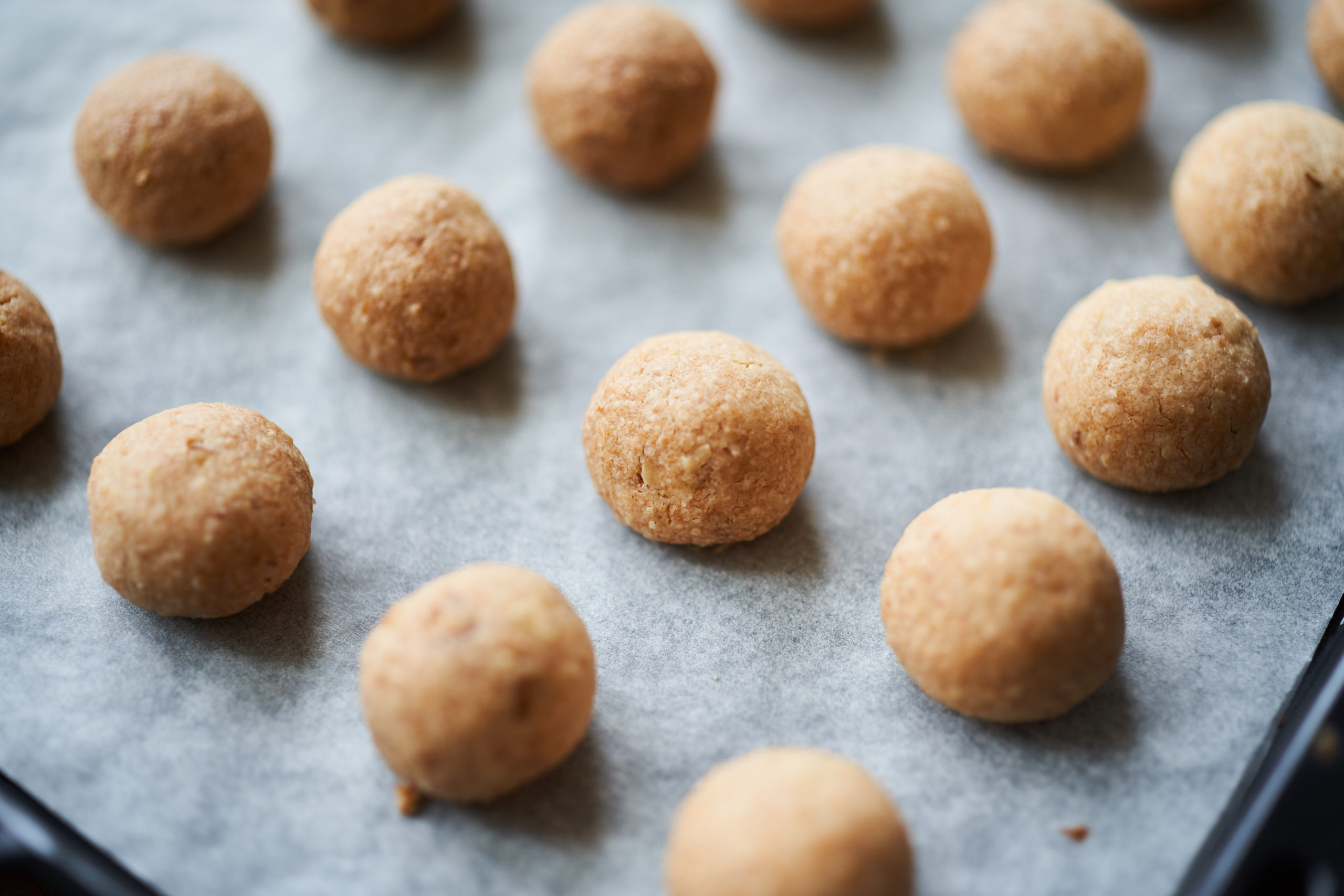 生地を直径2cmに丸め、オーブンシートをしいた天板にのせて