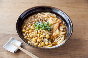 ●めんつゆで簡単10分!なめこと納豆のチゲうどん